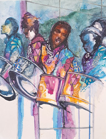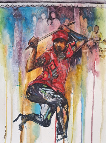 Pan on de Avenue 2023, 50x70cm (20x28"), Watercolour and decorative papers