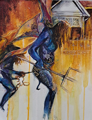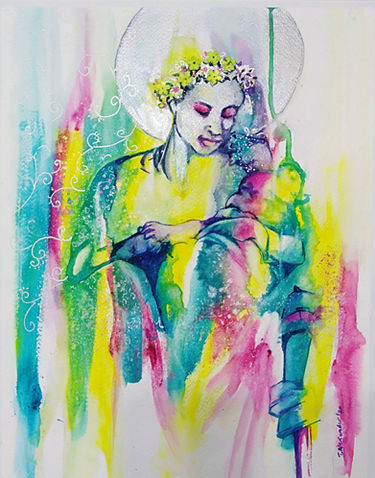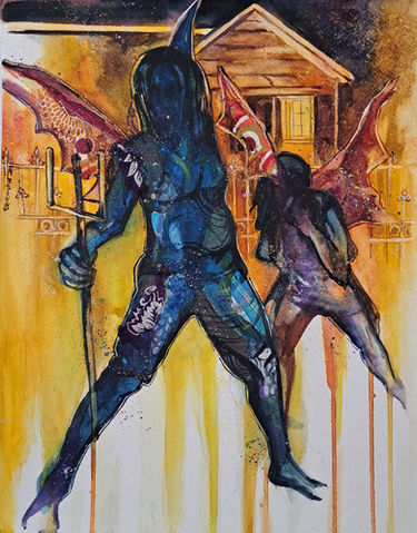 Spirit Walkers at Rest 2024, 70x50cm (28x20"), Watercolour and decorative papers
